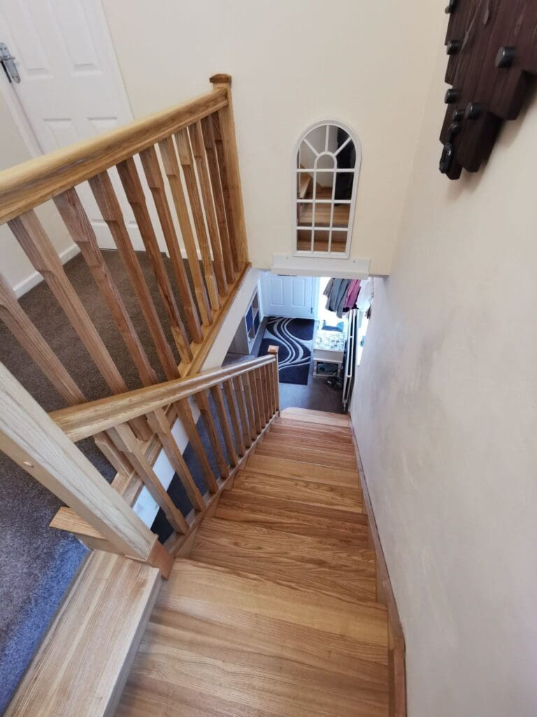 Standard straight stair cladding starts from just £1,300 including VAT, offering an impressive transformation at a competitive price. Additional features like winders, landings, and custom bannisters can be included for a fully bespoke design.