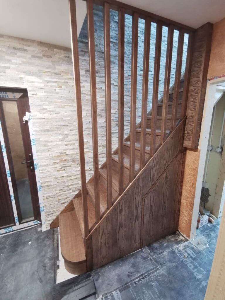 One of the biggest benefits of staircase cladding is the variety of finishes available. Whether you want a warm oak look, a rich walnut tone, or a sleek modern finish, we offer a range of colours and wood effects to suit your home’s décor. You can customise your staircase with matching or contrasting risers, decorative stringers, and bespoke bannisters, ensuring the final look complements your space perfectly.